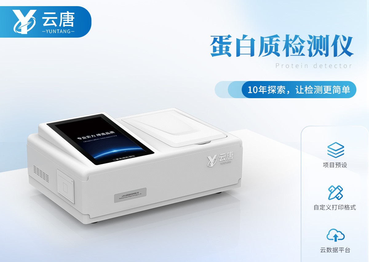 可快速检测奶粉、牛奶及乳制品中的蛋白质,仪器预留其他项目检测程序和端口,根据日后需求可方便的自主增加检测项目。
