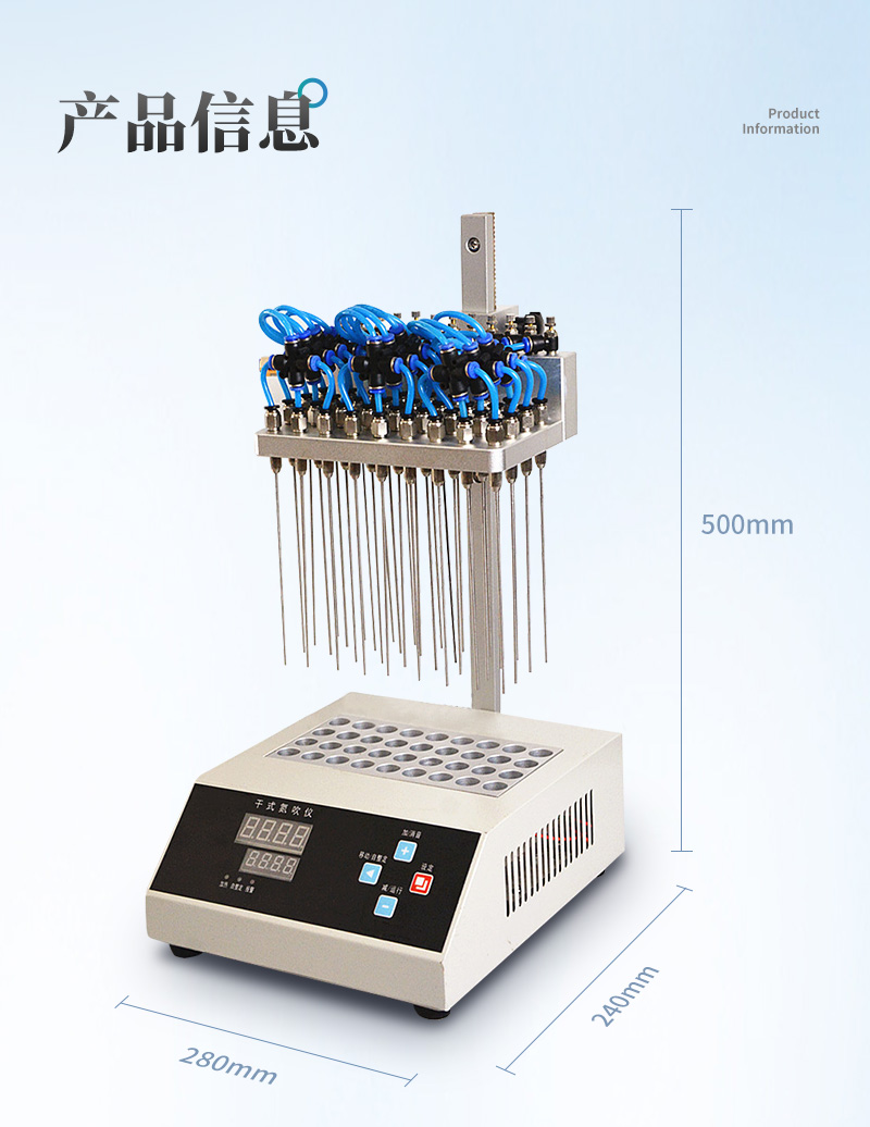 水浴氮吹仪采用吹扫捕集技术,同时可对样品进行控温加热,利用氮气等惰性气体快速、可控、连续地吹到样品表面来达到样品溶液快速无氧浓缩。该方法具有省时、便捷、准确的特点。广泛用于食品安全、医药、农药残留检测、临床药代等领域。