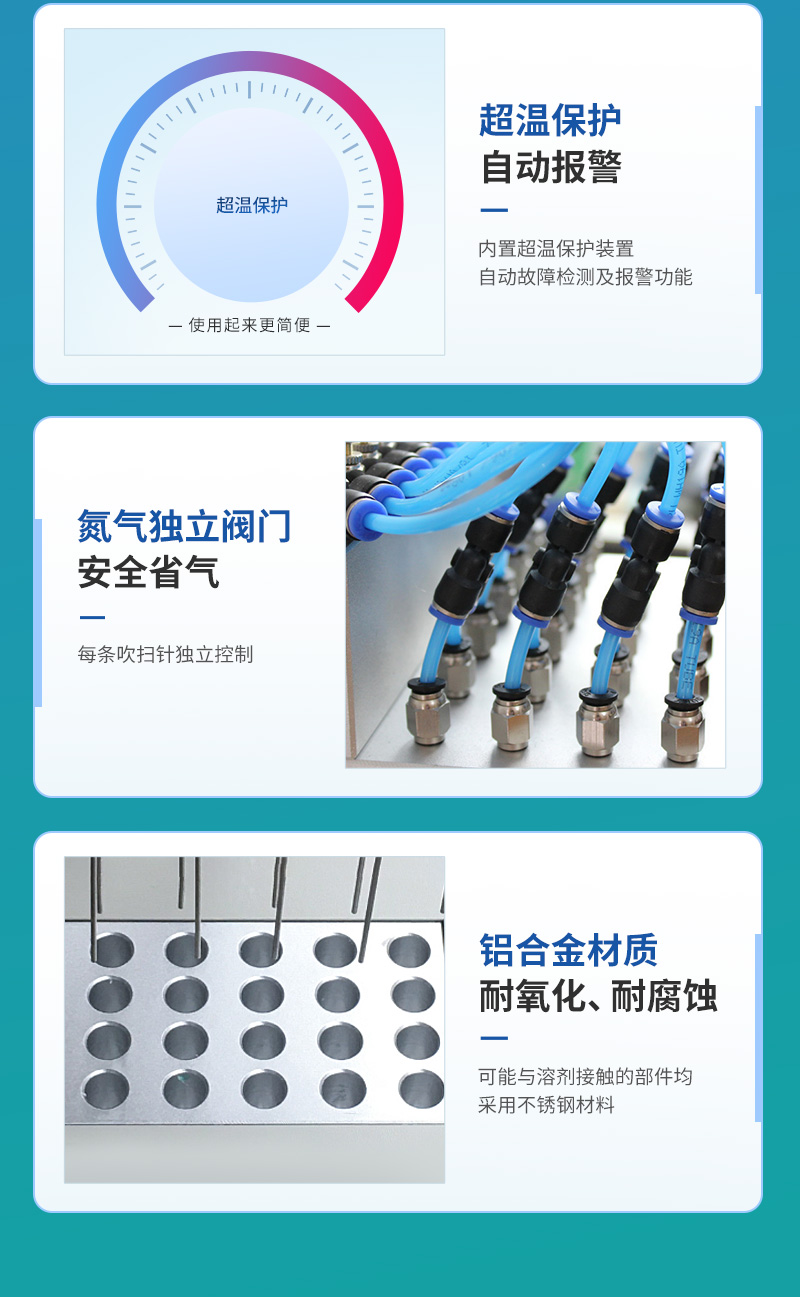 圆形水浴氮吹仪利用吹扫捕集技术,同时可对样品进行控温加热,通过氮气等惰性气体快速、可控、连续地吹到样品表面来达到样品溶液快速无氧浓缩。该方法具有省时、便捷、准确的特点。广泛用于食品安全、医药、农药残留检测、临床药代等领域。