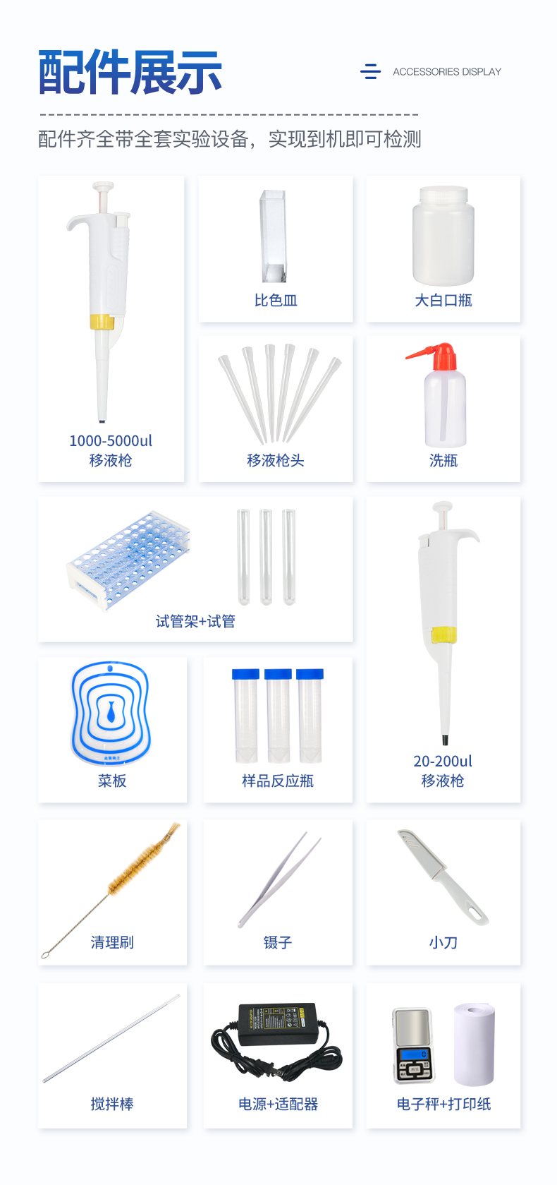 | 1)可加配语音报读功能,人性化指导操作。 | 2)仪器可实现自身加热功能。 | 3)可配置大容量锂电池。 |