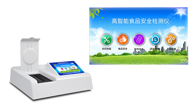 | 安卓智能操作系统,采用更加**和人性化操作,仪器具有网线连接、wifi联网上传、GPRS无线远传功能,快速上传数据。 | 智能化程度高,仪器具有自检功能:具有开机自检和调零功能,具有自动检测重复性功能。 | 检测通道:≥12个检测通道,可以同时测试多个样品,每个样品由程序控制分别独立工作,不会互相干扰。 | 显示方式:≥8英寸液晶触摸屏显示,人性化中文操作界面,读数直观、简单。 | 配备新一代嵌入式热敏打印机,可选择手动打印或者自动打印,检测完成可自动打印检测报告和二维码。 | 光源采用进口超高亮发光二极管,高精度、稳定性强、光源可控、可以关掉不使用的光源,功耗更低。 | 采用USB2.0接口设计,方便数据的存贮和移动,并可随时与计算机直接相连,并且可用计算机控制仪器。实现数据查询、浏览、分析、统计、打印等。 | 仪器带有监管平台。数据可局域网和互联网数据上传,检测结果直接传至食品安全监管平台。进行区域食品安全监管及大数据分析处理,检测区域食品安全长短期动态,达到食品安全问题预估、预警 | 一体化便携式快检设备,满足现场及流动检测使用需求,能够在同一软件下实现所有检测项目的检测,并可通过同一窗口直观显示检测结果。 | 仪器具有多品类多种类样品菜单库,可灵活选择检测样品,不同的检测通道可同时检测不同的样品项目。也可在仪器上直接编辑录入样品名称、检测指标、送检单位等信息并保存进样品数据库。 | 样品处理简单省力,整体操作快速、安全、便捷。 | 仪器具有自身保护功能,可设置用户名及密码,防止非工作人员操作等。 | 高灵敏度,高检测精度,高重复性精度,扫描式高精度光学传感器。 | 仪器具有重新校准、锁定、恢复出厂设置功能。 | 支持U盘存储。 结果判定线可修改,对照值标定值可保存,断电不丢失数据。 |
