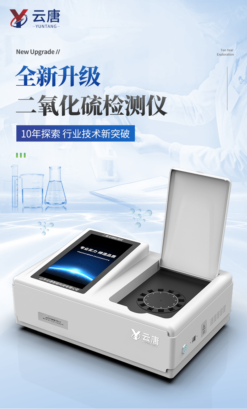 YT-R12二氧化硫检测仪采用比色方法符合《GB/T5009.34—2003食品中亚硫酸盐的测定》二氧化硫检测仪广泛应用于、果脯、糖类、酒类、各类干果、草药、水产品、肉类干鲜品及肉制品中的二氧化硫含量测定。