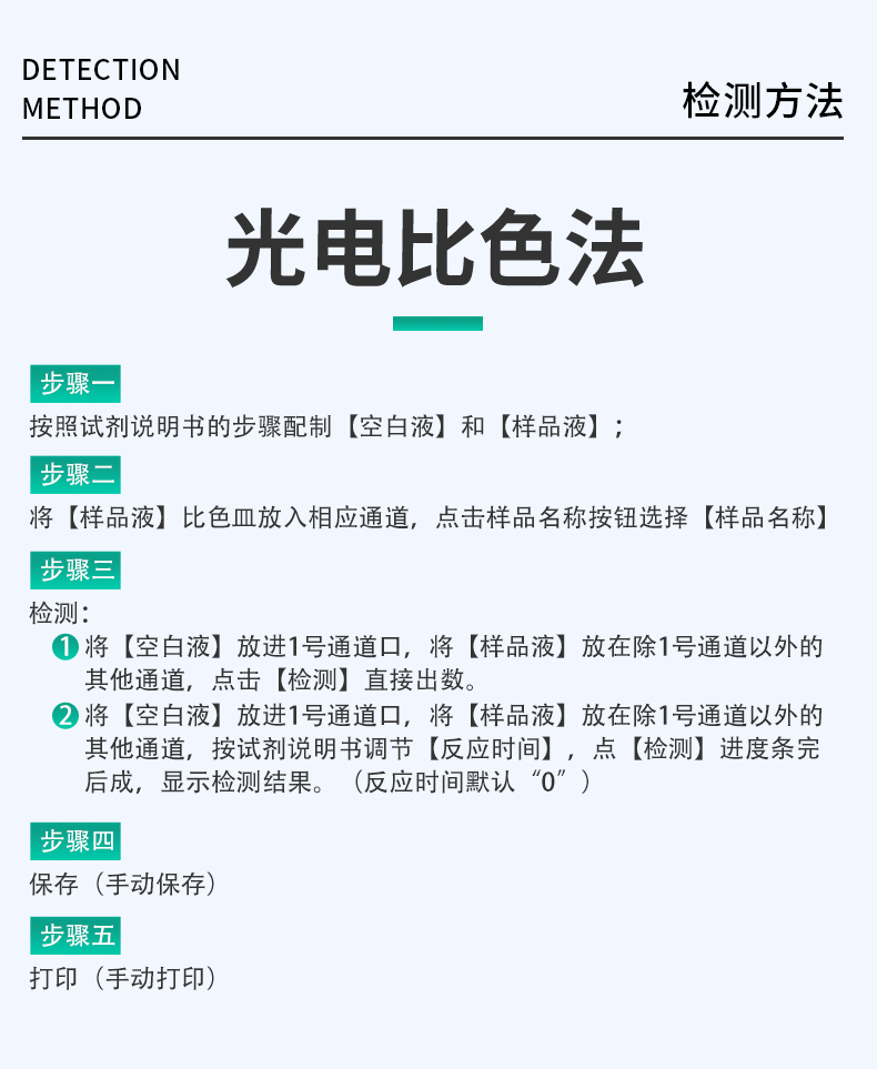 | 主控芯片采用ARM Cortex-A7,RK3288/4核处理器,主频1.88Ghz,运转速度更快速,稳定性更强。 | 显示方式:7英寸液晶触摸屏显示,人性化中文操作界面,读数直观、简单。 | 交直流两用,直流12V供电,也可连接车载电源,可加配6ah大容量充电锂电池,方便户外流动测试。 | 四波长冷光源,12个检测通道,每个通道均配置410、520、590、630nm波长光源,标配**的光路切换装置,专业光路切换功能可实现*多64波长,并且所有检测项目可实现所有通道同时检测 | 光源亮度自动调节与校准 | 智能恒流稳压,光强自动校准,长时间连续工作光源无温漂现象。 | 内置新国家限量标准,与所测结果进行现场比对,并持续更新标准。 | 不间断进样,连续检测 | 样本编号自动累加。 | 检测结果为Excel表格,连接电脑即可拷贝。 | 检测结果存储容量20万条 | 支持U盘存储,标准USB接口,免驱动安装。 | 检测项目可扩充,固件可升级 | 仪器尺寸:43×35×20cm, 主机净重:5.2g |