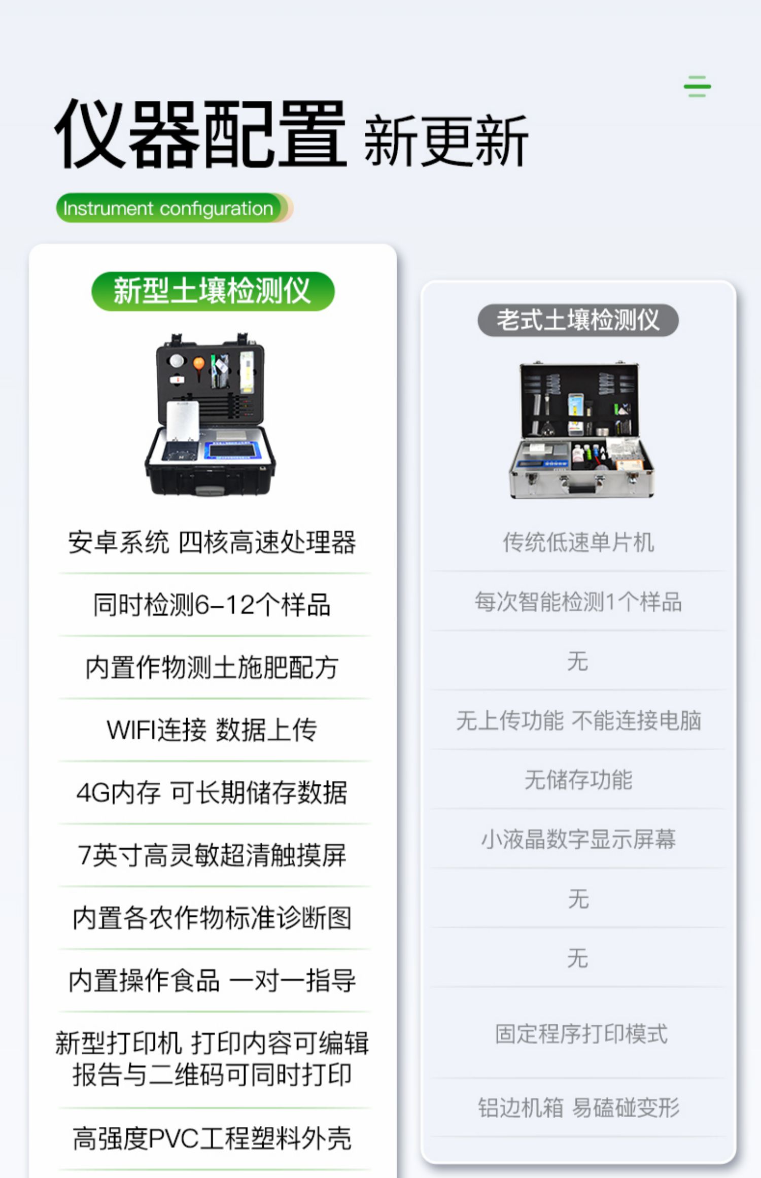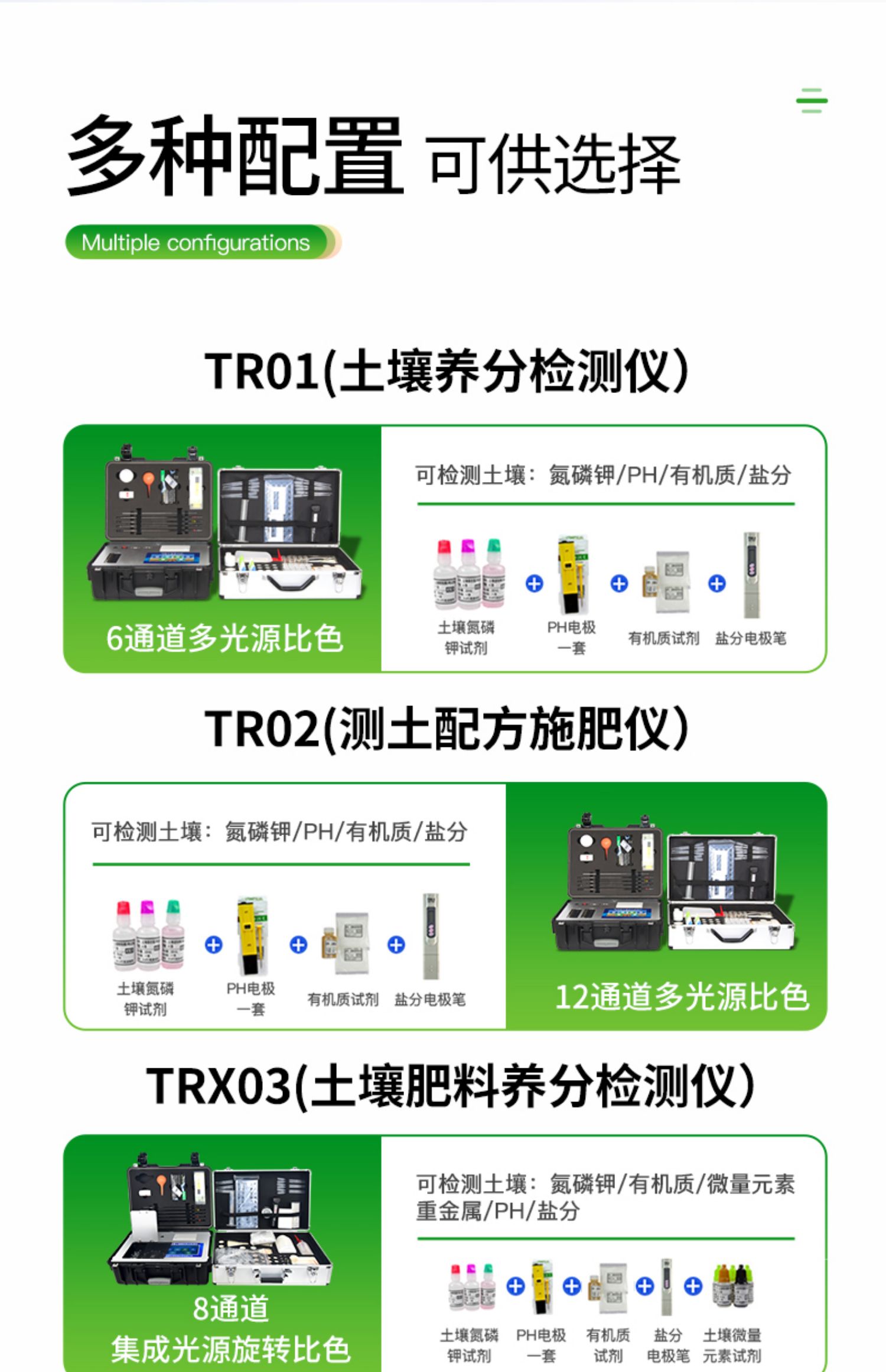 | 铅、砷、铬、镉、汞五项检测共60分钟左右(含土样前处理及试剂准备) | 铁、锌、锰、铜、铝单项检测30分钟左右(含土样前处理及试剂准备) |