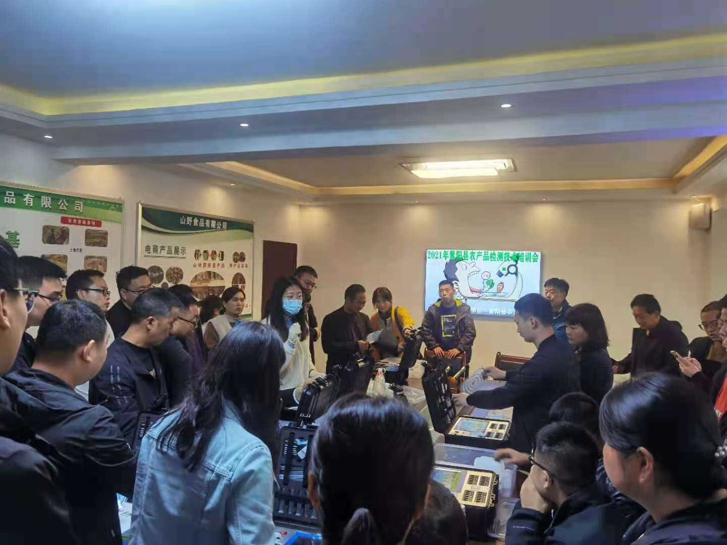 为了能够更加准确的检测食品当中农残及兽残,提高农业综合执法能力,陕西省安康市紫阳县农业农村局与我司达成合作,引进我司兽药残留检测仪农药残留检测仪,以下是我司仪器培训人员现场教学图。