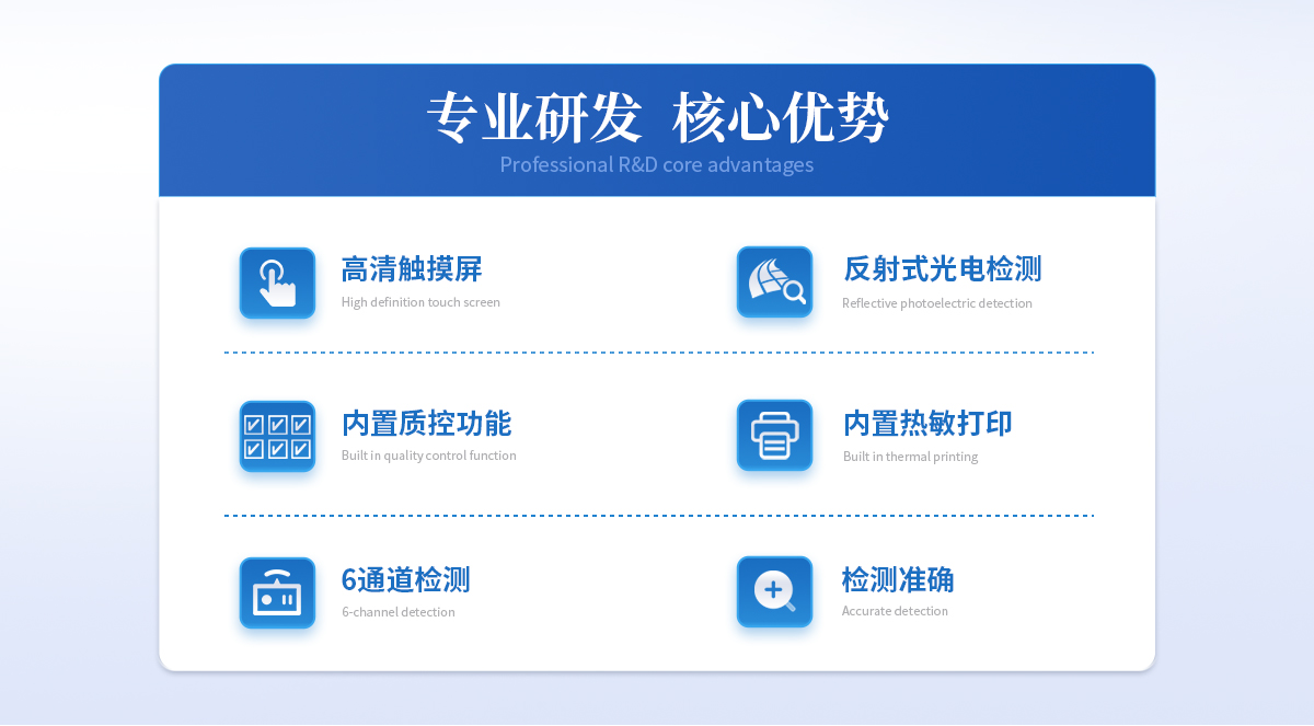| 本仪器是一款专为快速、精准定量或半定量分析胶体金免疫层析试纸条(GICA)设计的高性能光学检测设备。仪器集成了**的光电检测技术、智能数据处理平台及强大的网络功能,通过高稳定性光学系统实现对免疫层析结果的可靠读取、智能分析与即时报告输出。其坚固耐用的设计和便捷的操作流程,使其成为实验室研究与现场快速检测(POCT)的核心仪器。 |