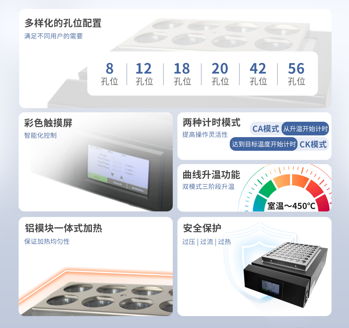 一.适用范围:1. 氮与蛋白质测试的样品消化制备;2. COD消化,总磷、砷等的消化;3. 重金属消化(铅 铜 锌 锡等)。二.功能特点:1. 8,12,18,20,42,56多种孔位满足不同需求用户;2. ☆彩色触摸···     更新时间:2026-04-24