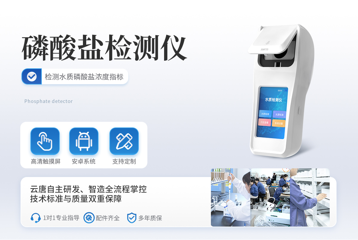 水质磷酸盐快速检测仪是参考标准GB/T 11893-1989钼酸铵分光光度法设计制造;主要检测水质磷酸盐浓度指标,兼具智能数据分析功能,图表、列表显示数据,分析一目了然;高清晰度彩色液晶触摸显示屏,Android智能操作系统,中文显示界面,中英文键盘,人性化操作,使用更简单。