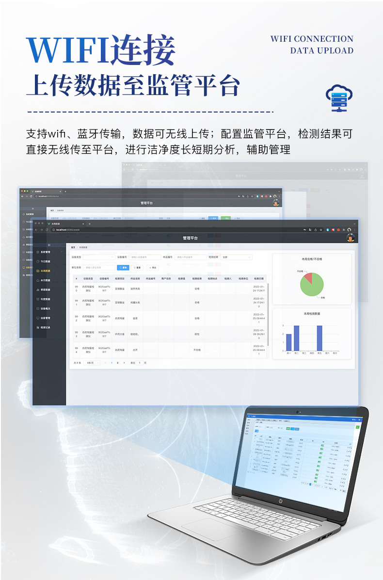 1、安卓系统7.1版本,操作交互体验更好。 2、内置温湿度传感器、环境气压传感器 3、核心部件光散射传感器明显消除腔体的杂散光,信噪比大为提高。从而使测量更准确更可靠。 4、按95%置信度(UCL)计算,计数结果可换算成m3和ft3 5、依照净化级别划分和规定,自动判定净化级别,使用便利。 6、带审计追踪功能,可查询、可追溯、可控制,符合FDA 21CFR PART11规范 7、支持wifi、蓝牙传输,数据可无线上传;同时支持U盘拷贝数据,免驱动插拔。 8、配置监管平台,检测结果可直接无线传至平台,进行洁净度长短期分析,辅助管理。 9、内置新一代高速热敏打印机,可选择所需要打印的粒径通道,灵活打印结果。 10、交直流两用,内置充电锂电池,环保耐用可支持连续采样6小时以上。 11、便捷简易伸缩式云台支架,安装采样操作更加方便。