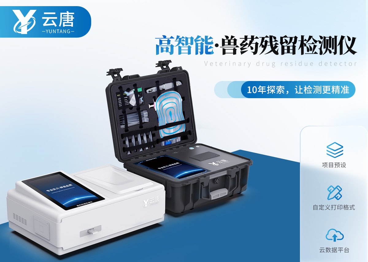 山东云唐智能科技有限公司生产的兽药残留检测仪可快速检测瘦肉精激素类食品安全项目,包含盐酸克伦特罗、沙丁胺醇、莱克多巴胺、己烯雌酚,兽药残留、抗生素类残留、真菌毒素类残留、动物疫病类等检测。