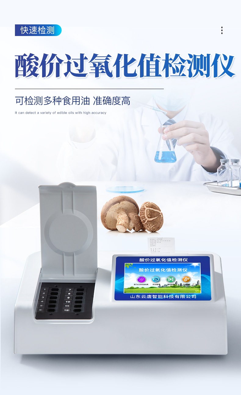 食用油过氧化值检测仪为集成化油品快速检测分析设备,能够快速检测食用植物油、食用猪油、花生油、葵花油、米糠油、食品、肉制品中的过氧化值含量;通过检测可确定植物油是否符合****或是否为劣质油、地沟油等。仪器预留其他项目检测程序和端口,根据日后需求可方便的自主增加检测项目。日后可升级为检测水产品、面制品的综合类型仪器。