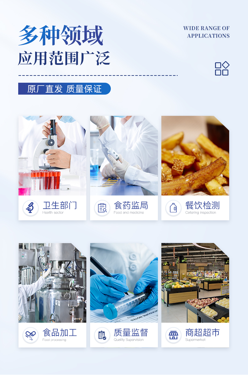 广泛应用于质量监督检验、工商管理、油炸食品生产基地、食药监局、卫生部门、肉制品食品深加工企业、商场超市、各大食品安全监测系统等单位使用。