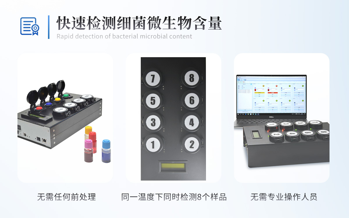 微生物检测仪集合培养皿法、酶法(β-葡萄糖苷酸酶分析)、免疫法(抗原搜寻)及基因法(基因搜寻)等技术的优点于一身,检测速度较国标法短