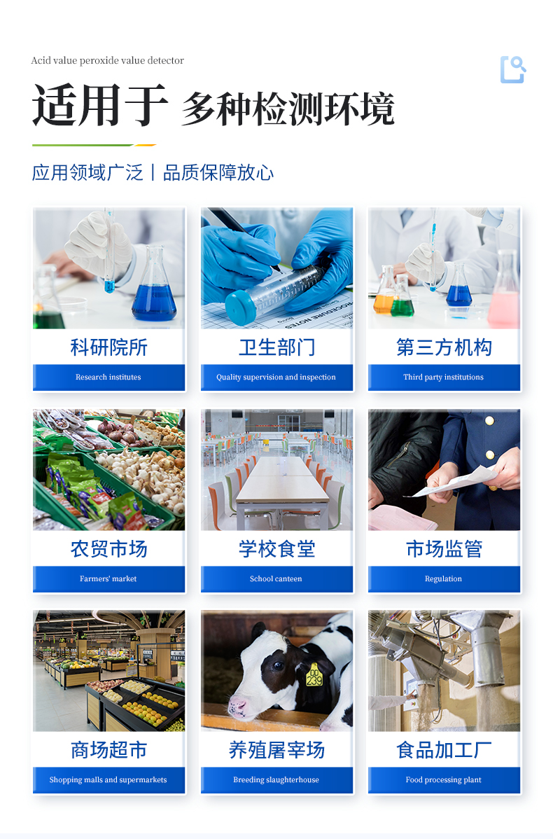 该高精度食品安全检测仪为集成化食品安全快速检测分析设备,广泛应用于食药监局、卫生部门、高教院校、科研院所、农业部门、养殖场、屠宰场、食品肉产品深加工企业、检验检疫部门等单位使用。